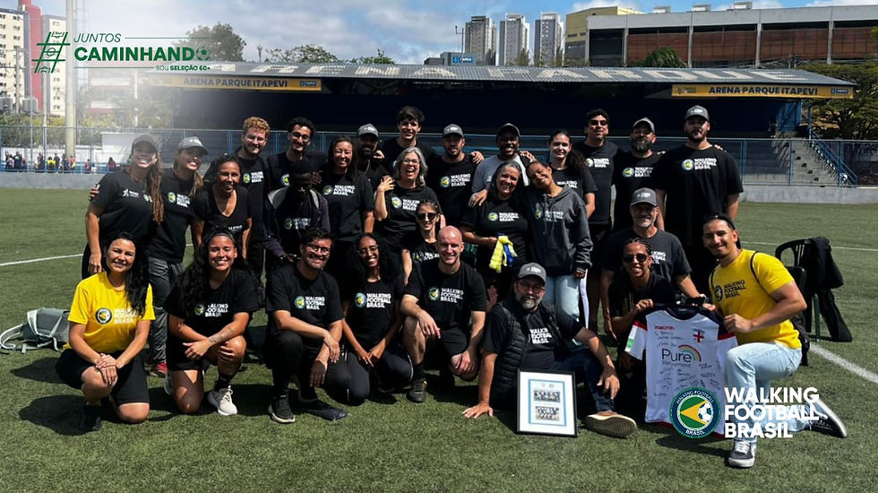 Futebol caminhando: Uma variante do futebol convencional - que se joga andando - e que nasceu na Inglaterra e é representado no país pela Walking Football Brasil.